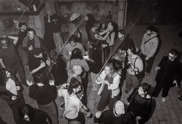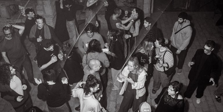 Gli eventi si tengono in un autentico maneggio per cavalli, un luogo unico dove suoni elettronici e arte visiva si intrecciano.